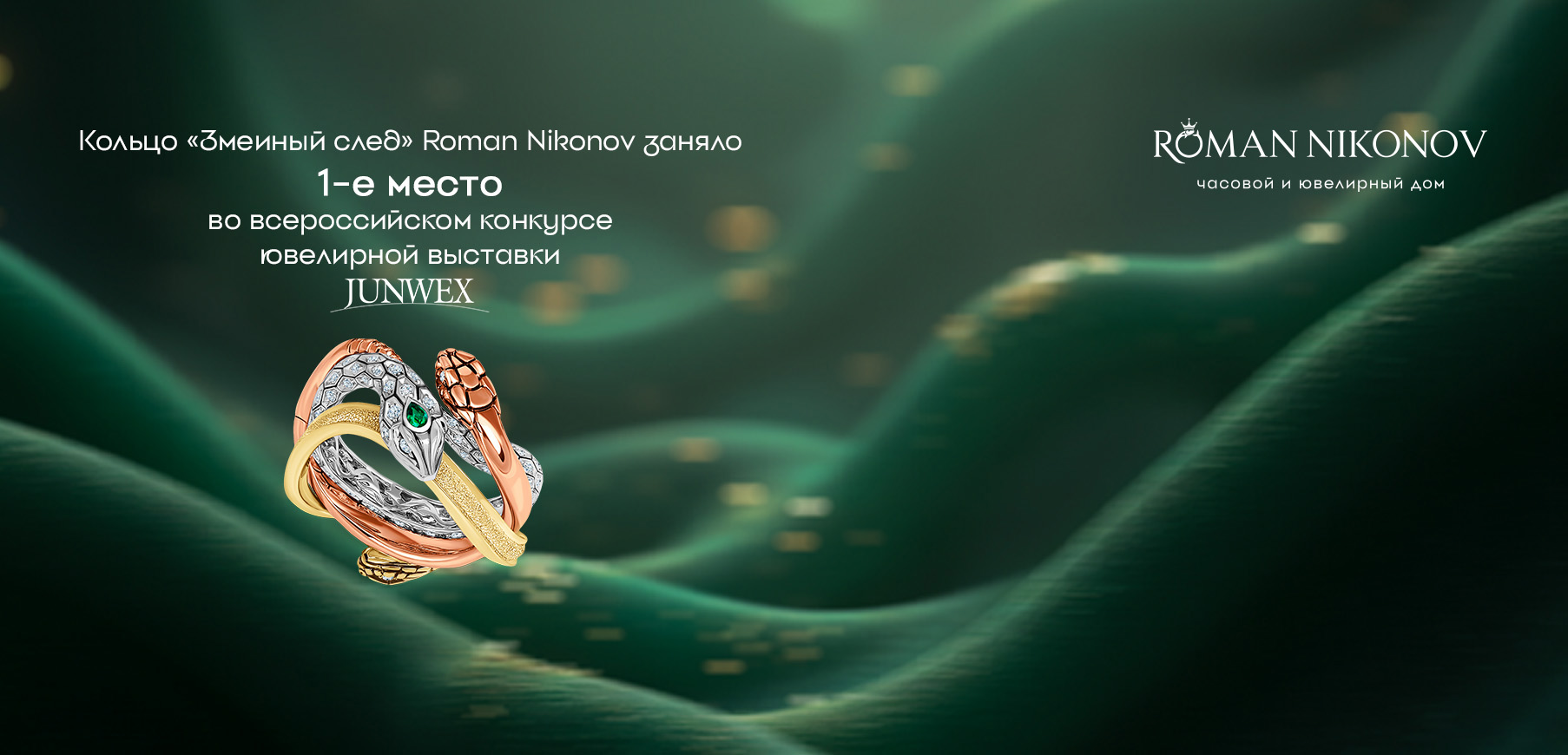 Кольцо "Змеиный след", Уральские сказки от часового и ювелирного дома Roman Nikonov завоевало первое место на всероссийском ежегодном конкурсе ювелиров "Дни лидеров российского ювелирного рынка".