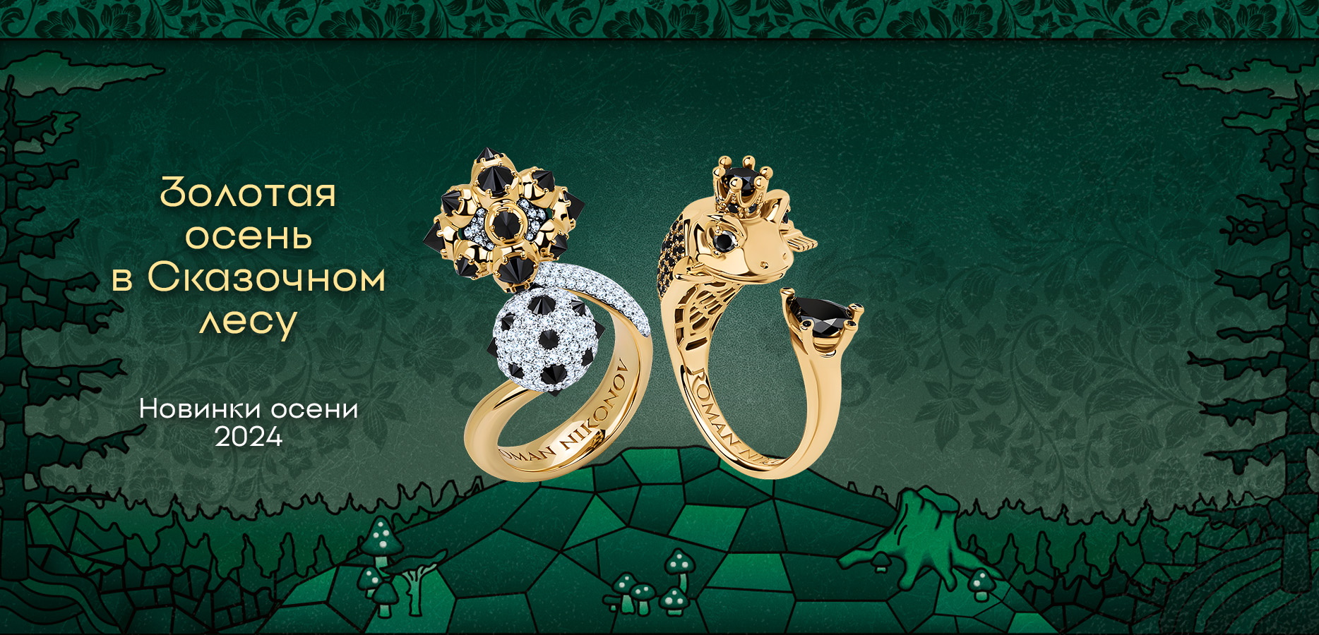 Фантастическое разомкнутое кольцо из желтого золота 750 пробы с бриллиантами "Ежевика" - ТОП украшений этой волшебной осени. Фактурный дизайн, сложнейшая работа мастера, авторский закреп камней 19 века, инкрустированный бриллиантами шар в шаре (ягодка), украшенном черными бриллиантами. Кольцо достойное царицы!А также стильное монокольцо "Царевна-лягушка" из желтого золото 750 пробы с черными бриллиантами. Яркое сочетание благородного металла и бриллиантов, сложная геометрия дизайна и авторское исполнение.