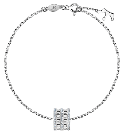 Необычный браслет с подвеской из комбинации в уникальной эстетике колец с бриллиантовым паве и колец с гранями. Изделие сочетает в себе элементы непревзойденной классики и сложную геометрию дизайна. Браслет прекрасно дополнит обручальный сет, а также станет приятным подарком на годовщину свадьбы.