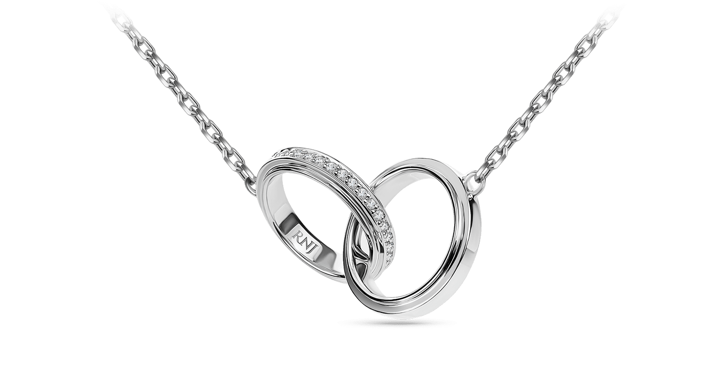 Браслет с центральным элементом из пары переплетенных колец, образующих символ бесконечности. Каждое кольцо имеет геометричную текстуру с гранями. Одно инкрустировано бриллиантами, второе – без вставок. Изделие сочетает в себе элементы непревзойденной классики и сложную геометрию дизайна. Подвеска прекрасно дополнит обручальный сет, а также станет приятным подарком на годовщину свадьбы.