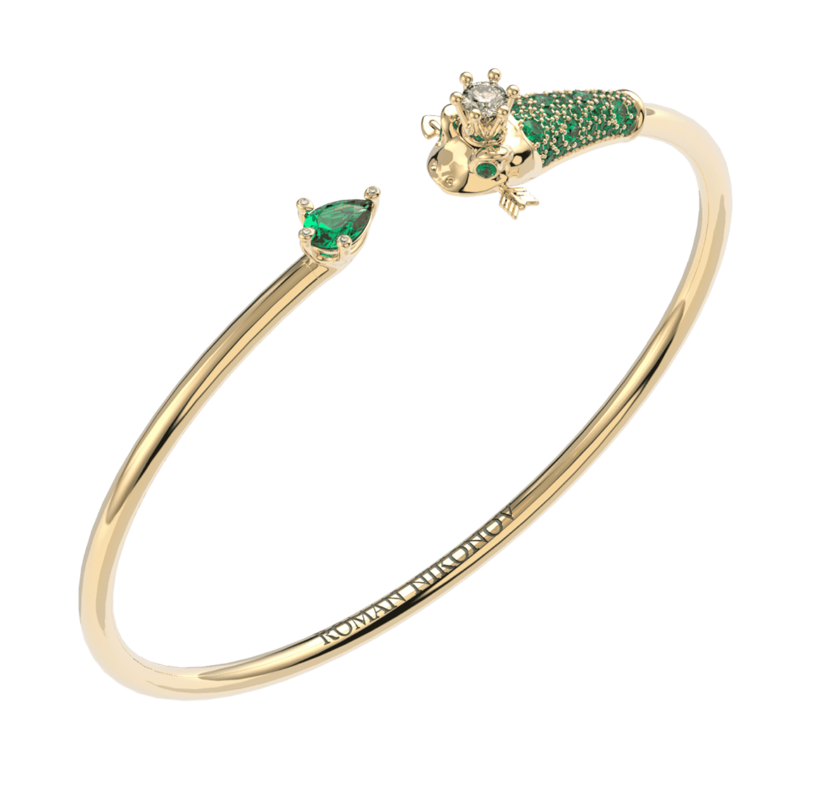 Браслет «Царевна-лягушка» из желтое золота 750 пробы с изумрудами и бриллиантами. Коллекция “Сказки”.