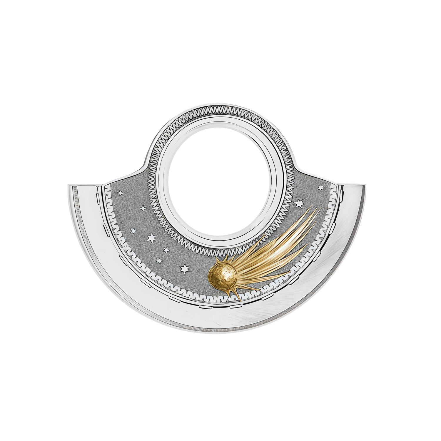 Циферблат из природного метеорита – космическая реликвия, несущая в себе следы далеких галактик. Каждая его структура, каждая полоса узора Муонионалуста как отпечаток времени, остановленного в металле, пережившем рождение звезд и падение планет.