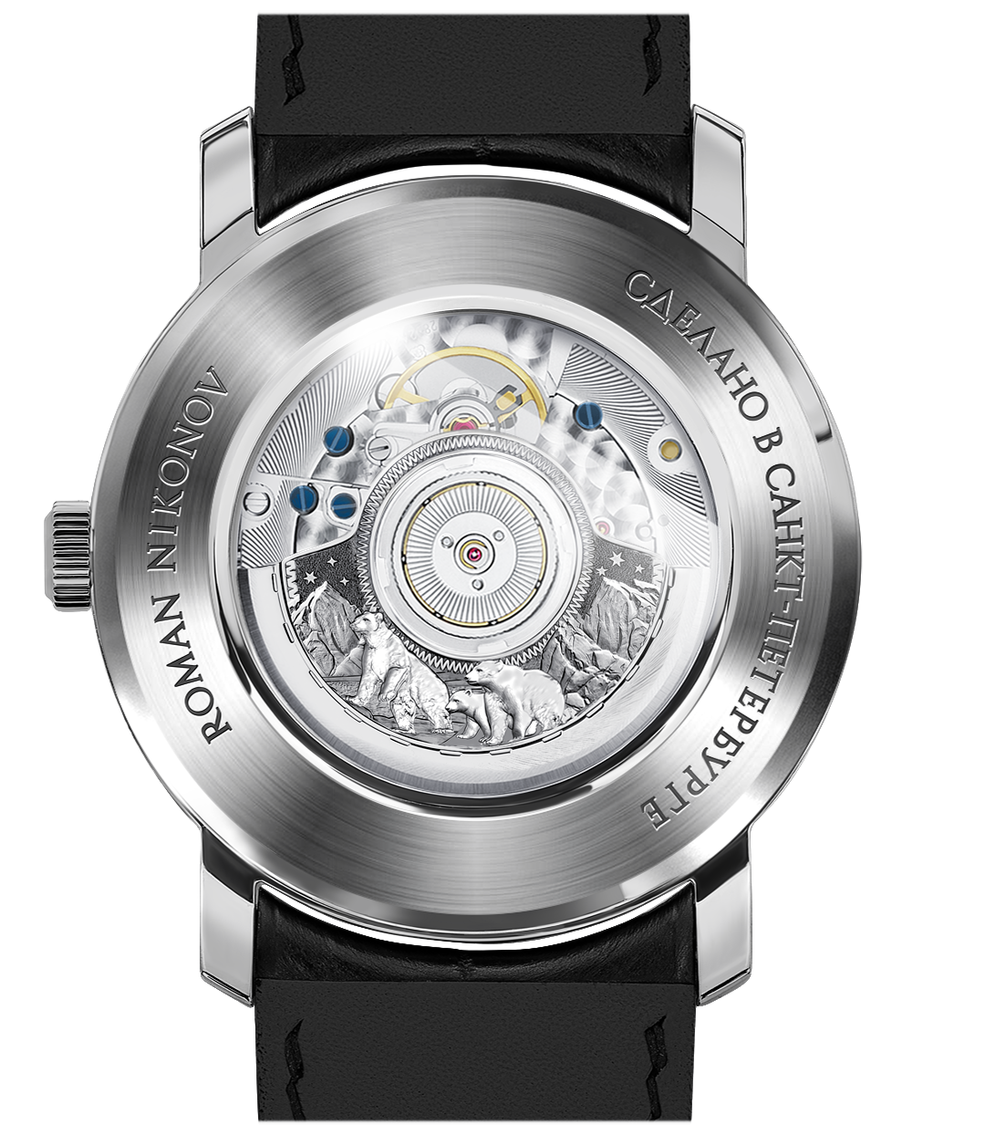 Дополняет фактуру рисунки морских гор и белых медведей, выгравированных вручную. Гравировка – настоящее декоративное искусство. Мастер-гравер, используя тщательно подобранный набор инструментов, вручную под микроскопом вырезает изысканные рисунки на самых благородных материалах. С высокой точностью он создает рельеф на поверхности, действуя с невероятной осторожностью и терпением, ведь малейшее неверное движение может разрушить результат многодневного труда.