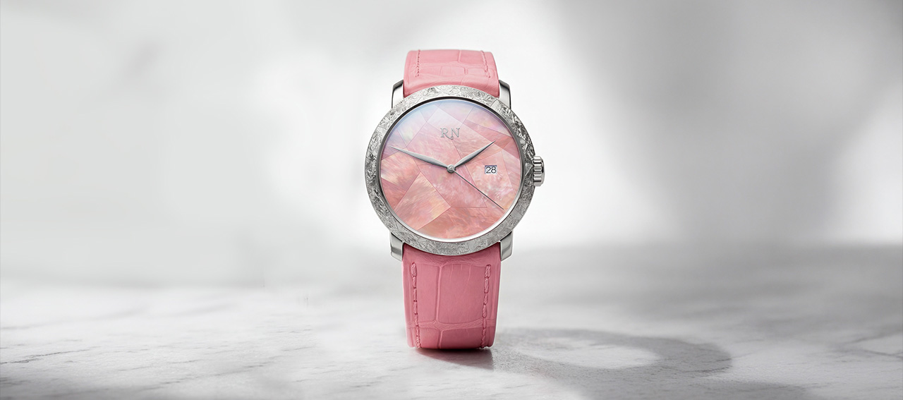 Часы Roman Nikonov «Розовый хрусталь» навеяны ощущением утренней тишины и света — тем редким моментом, когда мир словно замирает, отражаясь в теплых, переливчатых оттенках розового перламутра.
