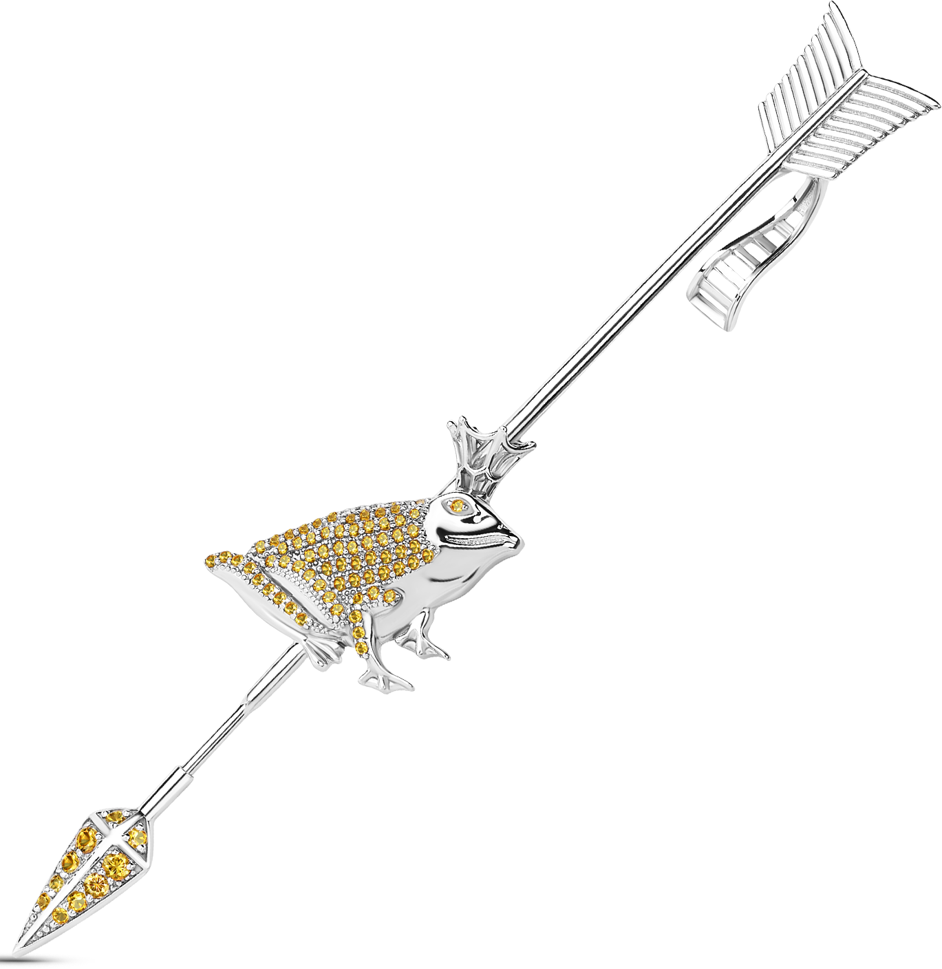 Стильный кафф, креативный и дерзкий. Лягушка и стрела украшены желтыми цитринами. Лягушка крепко держит в своих нежных лапках стрелу Ивана-царевича – свою судьбу, счастье и любовь. А вы готовы поймать свое? Смело надевайте кафф – он точно с этим поможет!