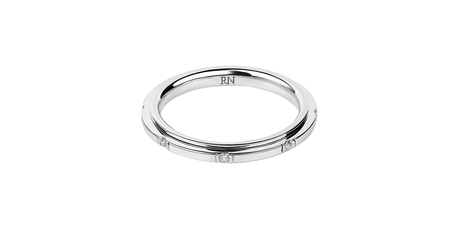 Обручальное кольцо «Сатурн» из белого золота 750 пробы с бриллиантами. Коллекция «Классическая».