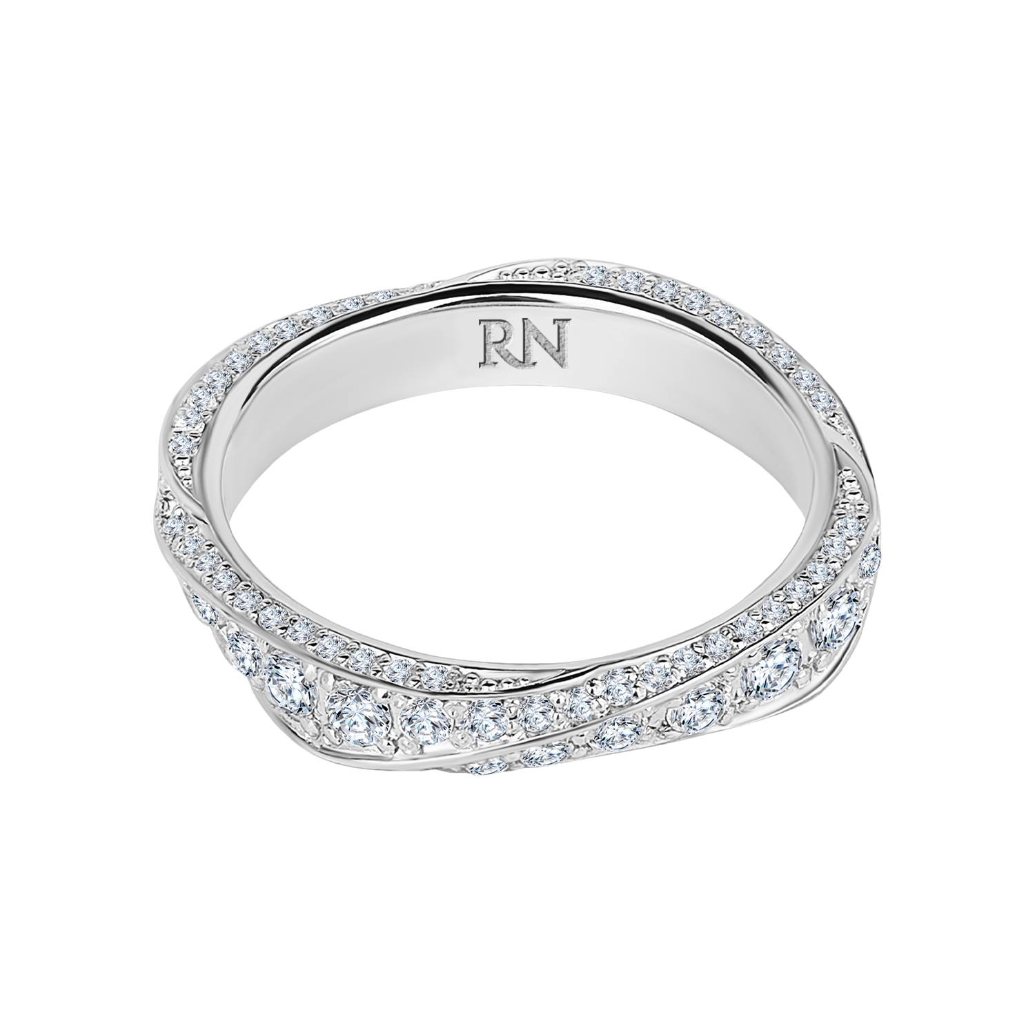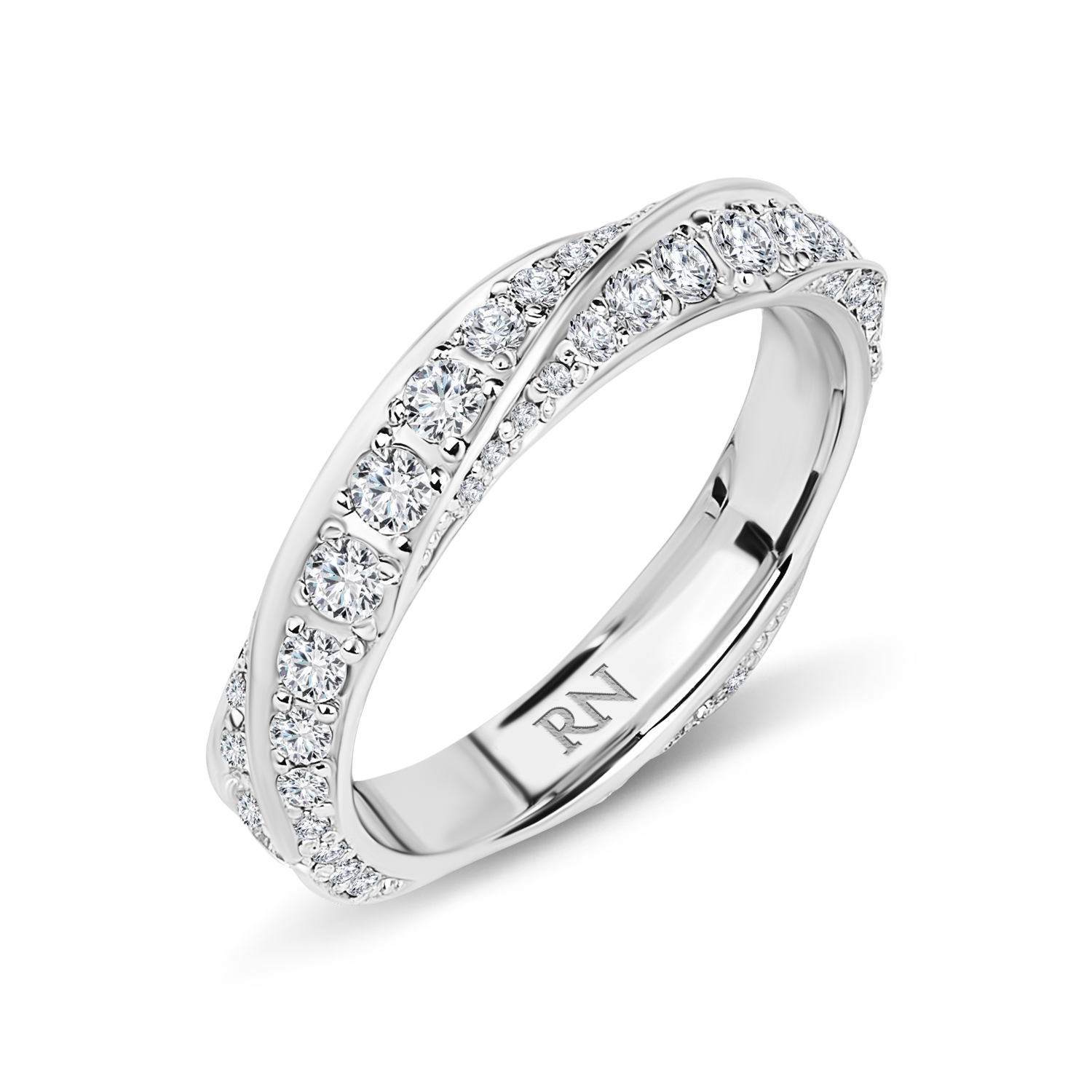 Обручальное кольцо «Спираль» из белого золота 750 пробы c бриллиантами. Коллекция «Классическая».