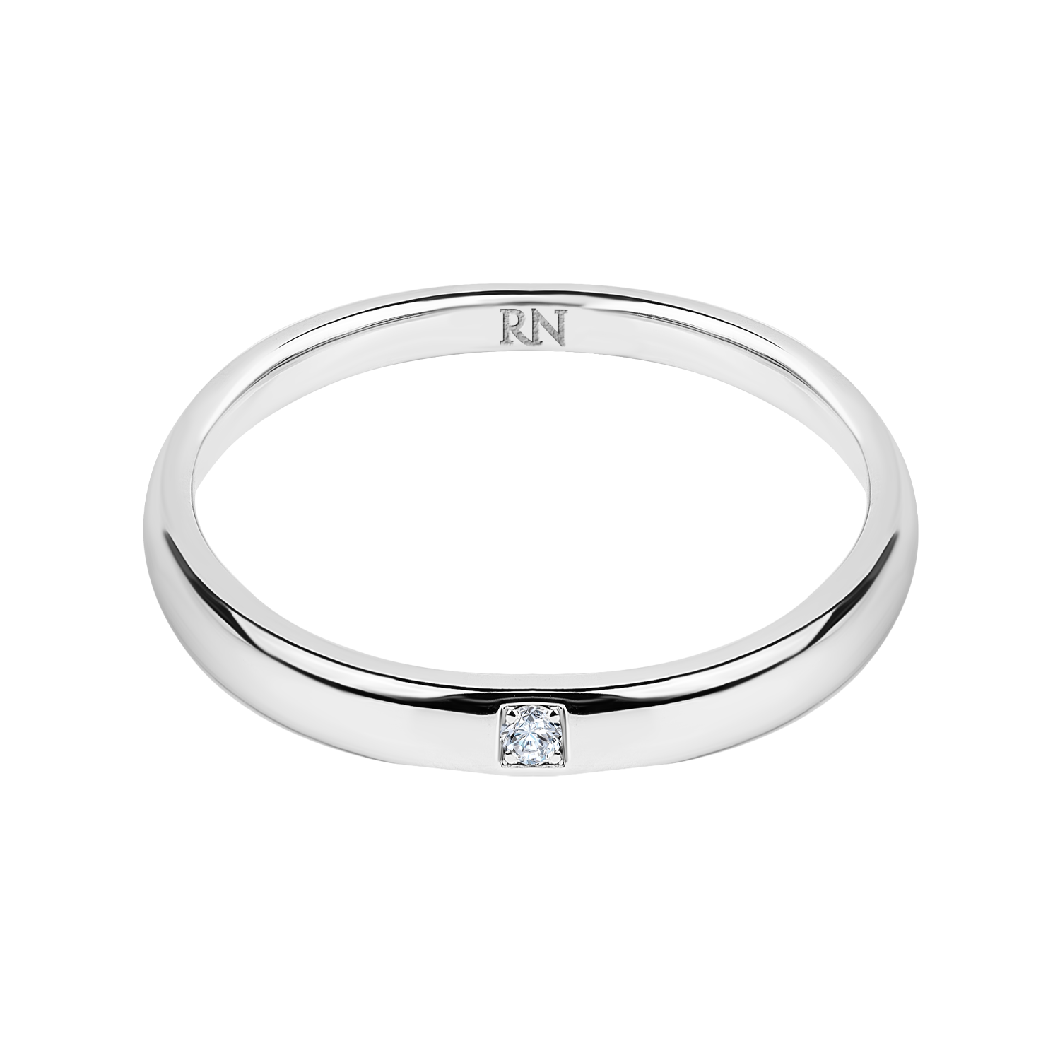 Обручальное кольцо из белого золота 750 пробы с бриллиантом. Коллекция «Классическая».
