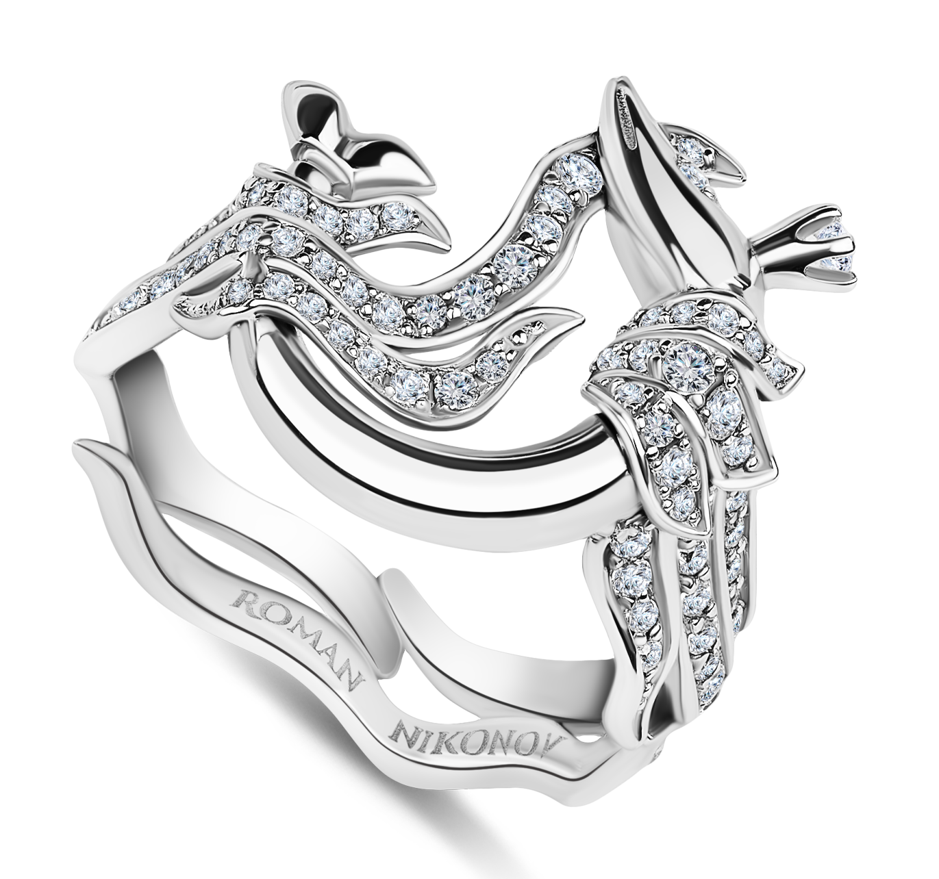Кольцо «По щучьему велению» из белого золота 750 пробы с бриллиантами. Коллекция «Сказки».