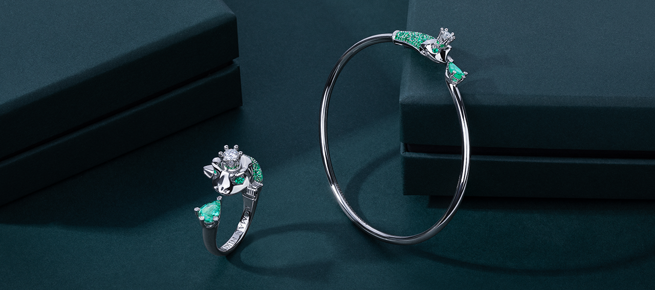 В коллекции Царевна-лягушка представлены: кольца, браслеты, подвески, пусеты, каффы.
