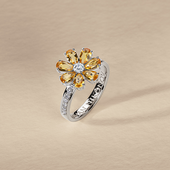 Кольцо «Цветик» из белого золота 750 пробы с цитринами и бриллиантами. Коллекция «Сказки».