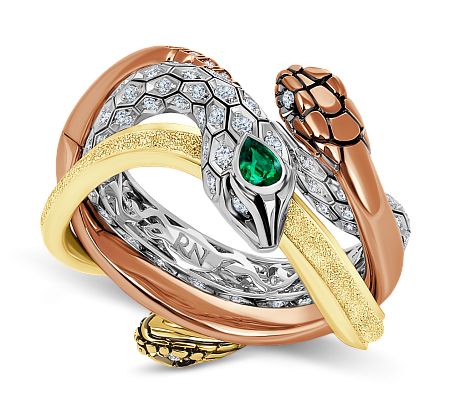 Неповторимое грациозное кольцо в виде трех переплетенных сказочных змей.