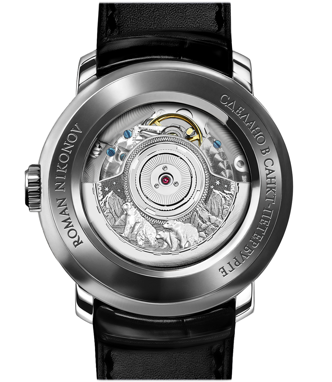 Дополняет фактуру рисунки морских гор и белых медведей, выгравированных вручную. Гравировка – настоящее декоративное искусство. Мастер-гравер, используя тщательно подобранный набор инструментов, вручную под микроскопом вырезает изысканные рисунки на самых благородных материалах. С высокой точностью он создает рельеф на поверхности, действуя с невероятной осторожностью и терпением, ведь малейшее неверное движение может разрушить результат многодневного труда.