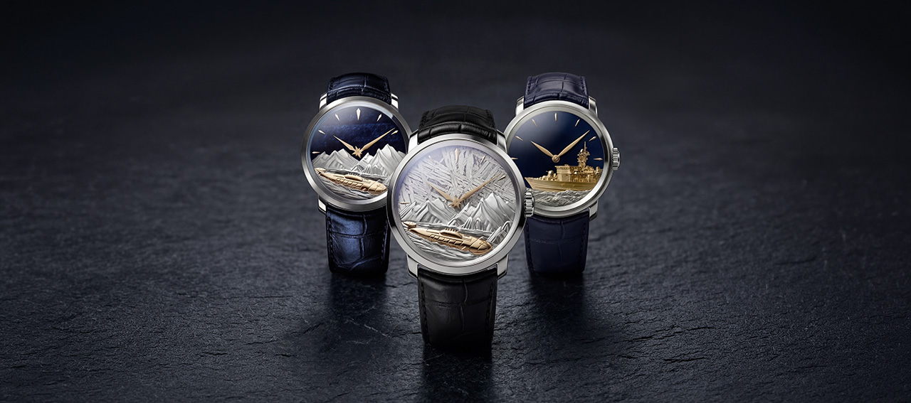 Дополняет фактуру рисунки морских гор и белых медведей, выгравированных вручную. Гравировка – настоящее декоративное искусство. Мастер-гравер, используя тщательно подобранный набор инструментов, вручную под микроскопом вырезает изысканные рисунки на самых благородных материалах. С высокой точностью он создает рельеф на поверхности, действуя с невероятной осторожностью и терпением, ведь малейшее неверное движение может разрушить результат многодневного труда.