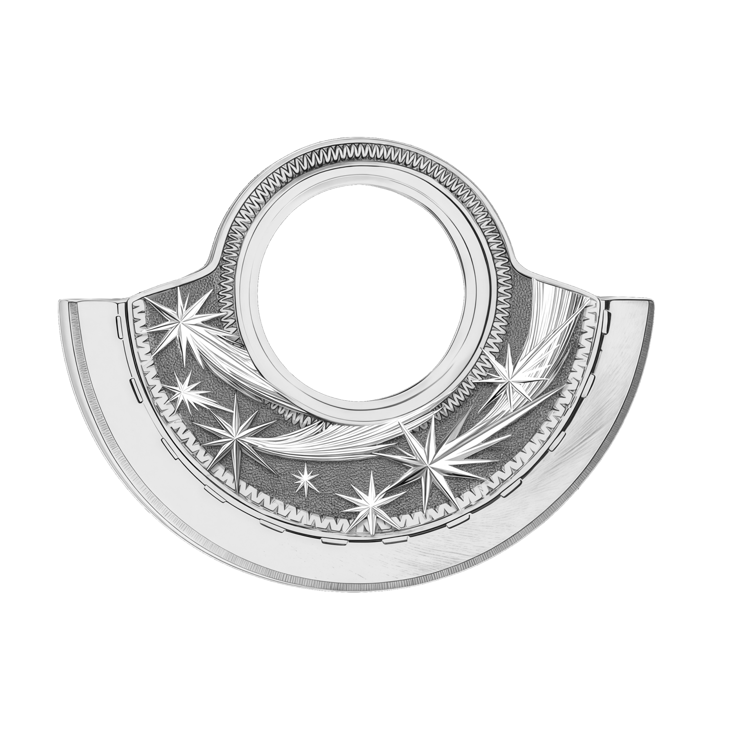 На ротор нанесен рельефный рисунок кометы, который выгравировывается вручную. Гравировка – настоящее декоративное искусство. Мастер-гравер, используя тщательно подобранный набор инструментов, вручную вырезает изысканные рисунки на самых благородных материалах. С высокой точностью он создает рельеф на поверхности, действуя с невероятной осторожностью и терпением, ведь малейшее неверное движение может разрушить результат многодневного труда.