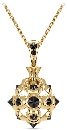 Подвеска «Ежевика» из желтого золота 750 пробы с черными бриллиантами. Коллекция «Сказочный лес».
