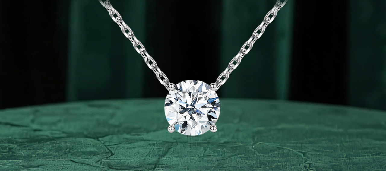 Подвеска из белого золота инкрустирована бриллиантом классической огранки.