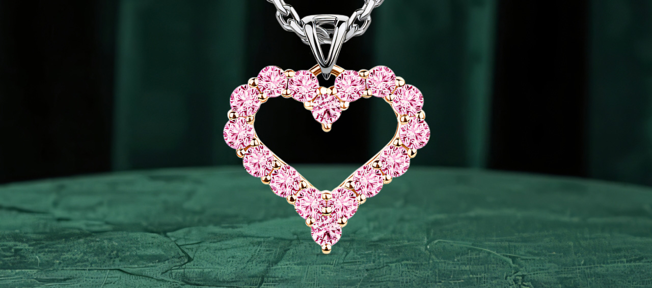 Романтическая подвеска из белого и желтого золота в виде сердечка инкрустирована дорожкой из топазов классической огранки.