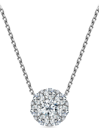 Подвеска из белого золота инкрустирована дорожками бриллиантов классической огранки.