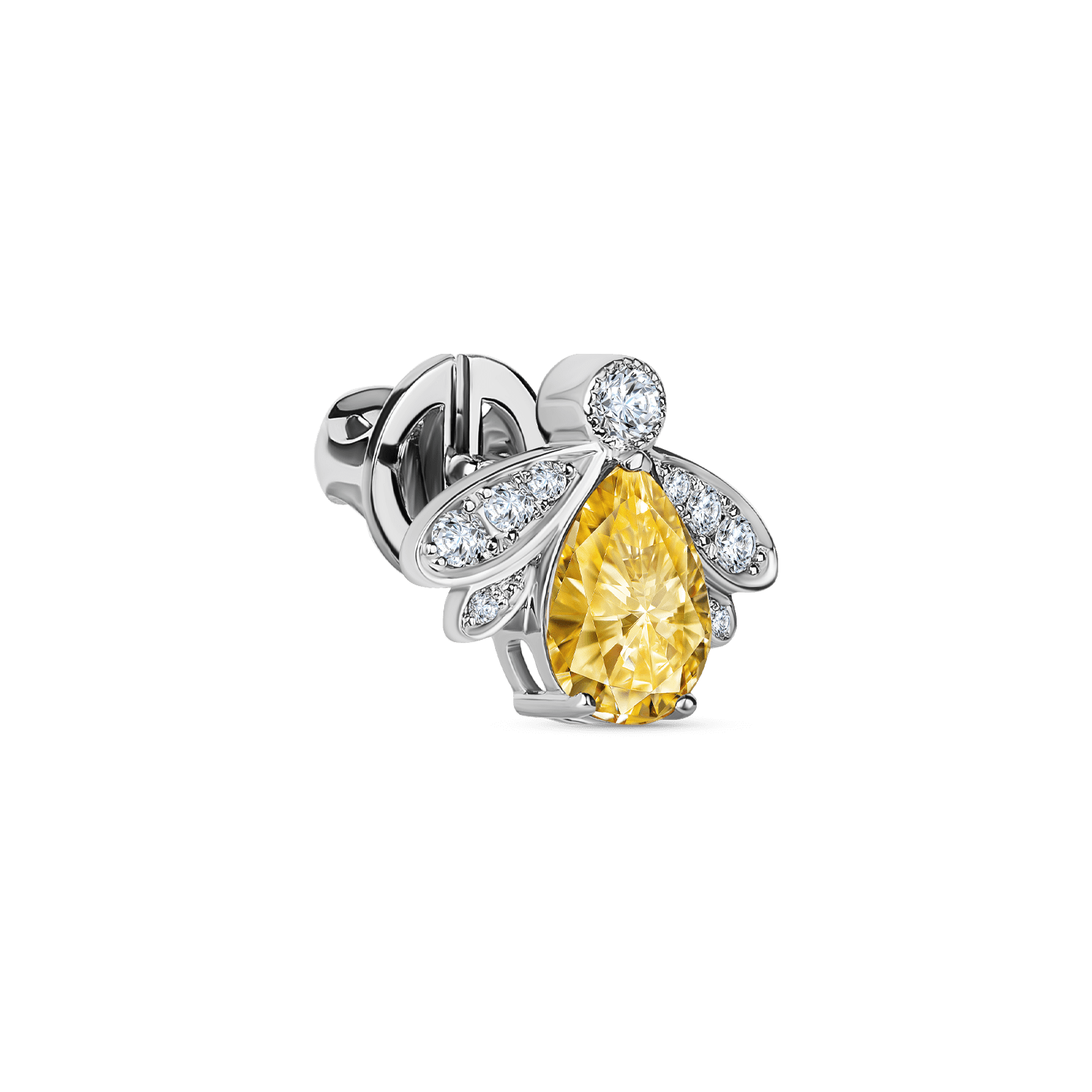 Монопусета «Пчела-труженица» из белого золота 750 пробы с бриллиантами и цитрином. Коллекция «Сказочный лес».