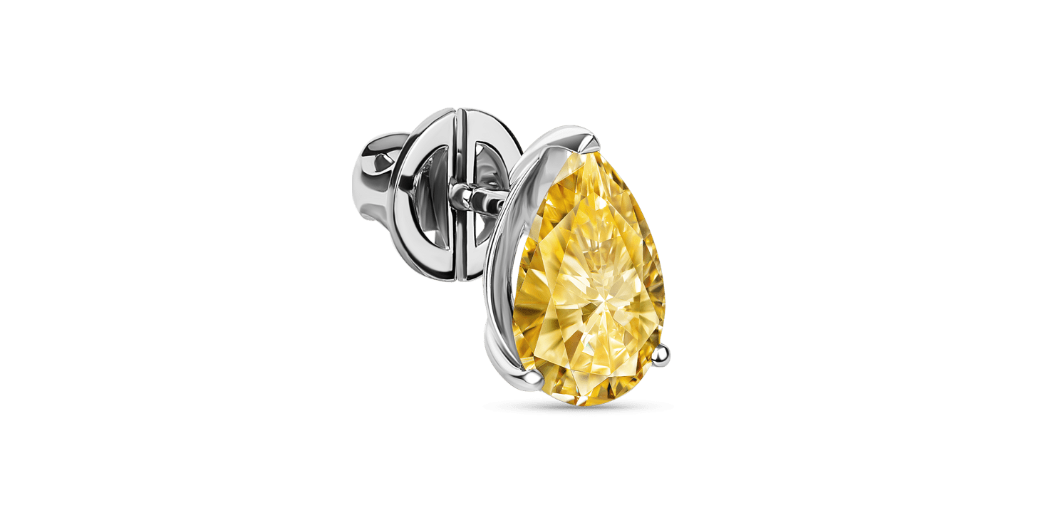 Монопусета «Целебный мед» из белого золота 750 пробы с цитрином. Коллекция «Сказочный лес».