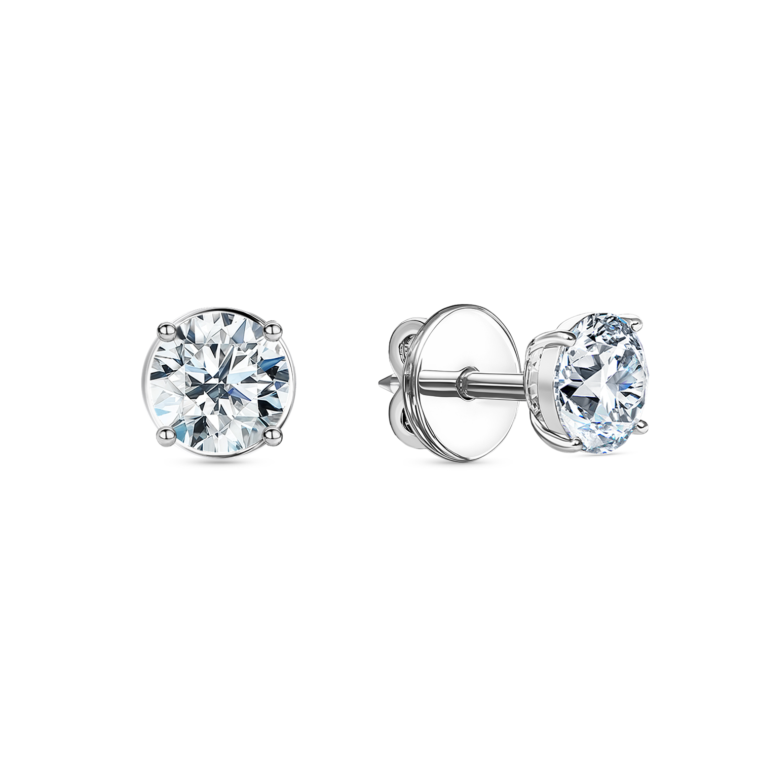 Пусеты из белого золота 750 пробы с бриллиантами. Коллекция «Классическая».