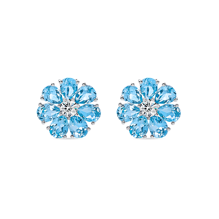 Пусеты «Цветик» из белого золота 750 пробы с топазами Swiss и бриллиантами. Коллекция «Сказки».