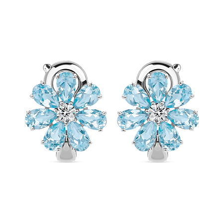 Пусеты «Цветик» из белого золота 750 пробы с топазами Sky и бриллиантами. Коллекция «Сказки».