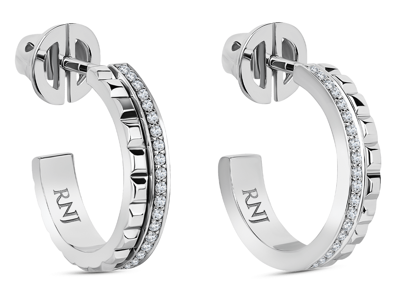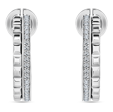 Необычные серьги в уникальной эстетике комбинации колец с бриллиантовым паве и колец с гранями. Изделие сочетает в себе элементы непревзойденной классики и сложную геометрию дизайна. Серьги прекрасно дополнят обручальный сет, а также станут приятным подарком на годовщину свадьбы.