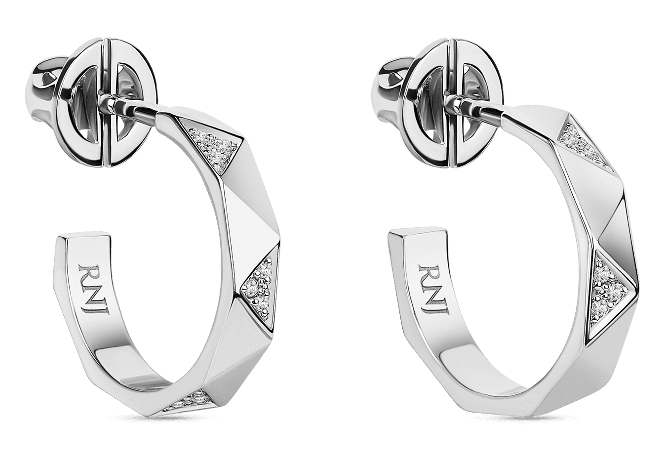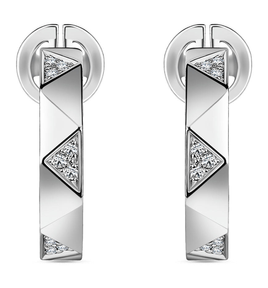 Серьги с текстурой призмы и сочетанием глянцевых граней и граней, инкрустированных бриллиантами. Серьги прекрасно дополнят обручальный сет, а также станут приятным подарком на годовщину свадьбы.