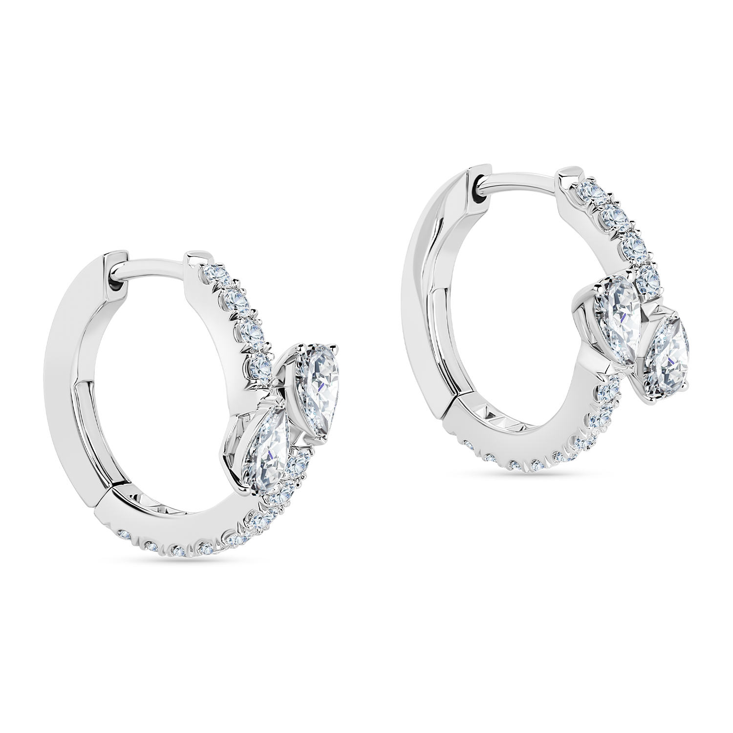 Серьги, инкрустированные бриллиантовой дорожкой с капельками бриллиантов огранки "груша". Элегантные серьги с фактурным дизайном завораживают блеском и сиянием камней.