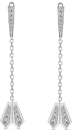 Нежные, воздушные серьги с утонченным дизайном покоряют сердце с первого взгляда! Острие и грани стрелы выполнены в виде геометрического сердца, инкрустированного бриллиантами, а стержень из воздушных звеньев буквально струится в воздухе.