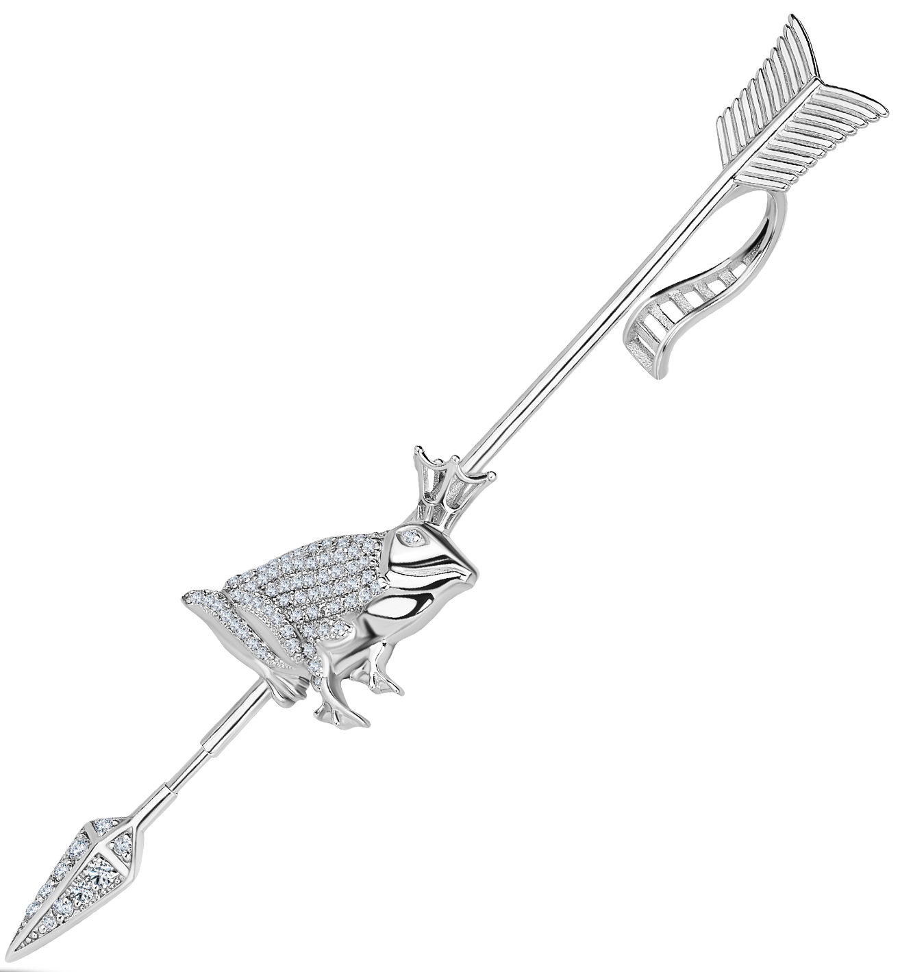 Стильный кафф, креативный и дерзкий. Лягушка и стрела украшены бриллиантами. Лягушка крепко держит в своих нежных лапках стрелу Ивана-царевича – свою судьбу, счастье и любовь. А вы готовы поймать свое? Смело надевайте кафф – он точно с этим поможет!