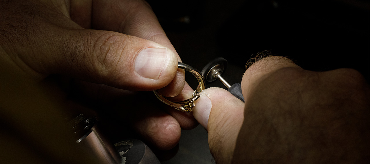 Для сборки в единую композицию необходимо было обработать каждую деталь по отдельности, подогнать к своему месту и отполировать те места, которые будут недоступны при финишной сборке кольца.