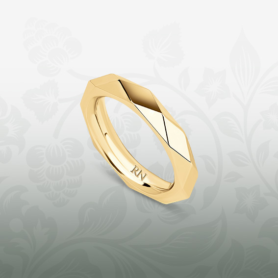 Обручальное кольцо «Геометрия» из желтого золота 750 пробы с гранями и бриллиантами. Коллекция «Классическая».