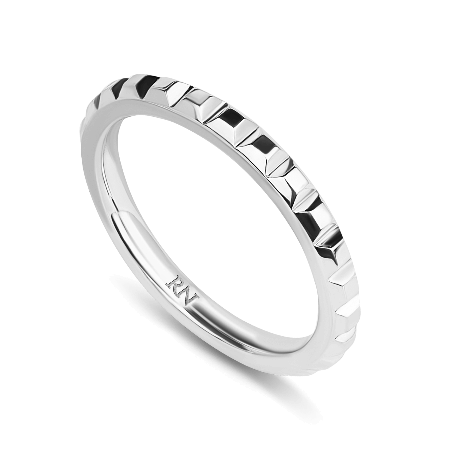 Узкое обручальное кольцо «Куб» из белого золота 750 пробы без вставок. Коллекция «Классическая».