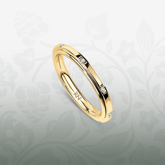 Обручальное кольцо «Сатурн» из желтого золота 750 пробы. Коллекция «Классическая».