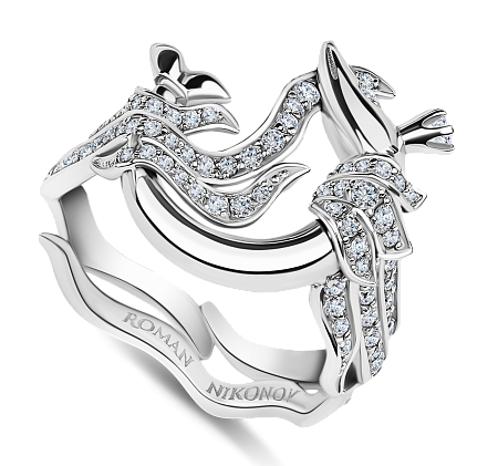 Кольцо «По щучьему велению» из белого золота 750 пробы с бриллиантами. Коллекция «Сказки».