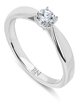 Помолвочное кольцо с центральным бриллиантом классической круглой огранки. С шинки к бриллианту будто поднимаются лепестки бутона, поддерживая элегантную композицию.