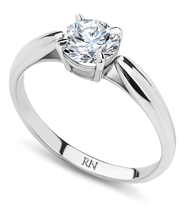 Помолвочное кольцо с центральным бриллиантом классической круглой огранки. С шинки к бриллианту будто поднимаются лепестки бутона.