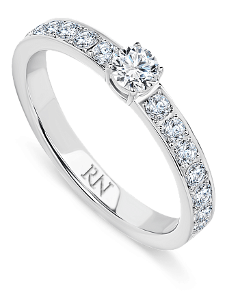 Кольцо для помолвки из белого золота 750 пробы с дорожкой бриллиантов. Коллекция «Классическая».