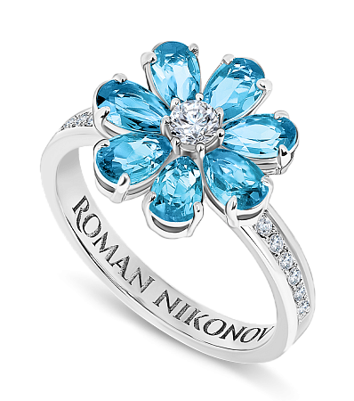 Кольцо «Цветик» из белого золота 750 пробы с топазами Swiss и бриллиантами. Коллекция «Сказки».
