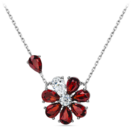 Яркий, романтический сет, в который вошли подвеска и пусеты. Украшения выполнены из серебра 925, цветики в виде нежных лепестков с белым топазом и алыми гранатами. На подвеске также закреплен алый лепесток, который добавляет игривости и загадочности украшению. Сет подчеркивает нежность, очарование и индивидуальность своей обладательницы.