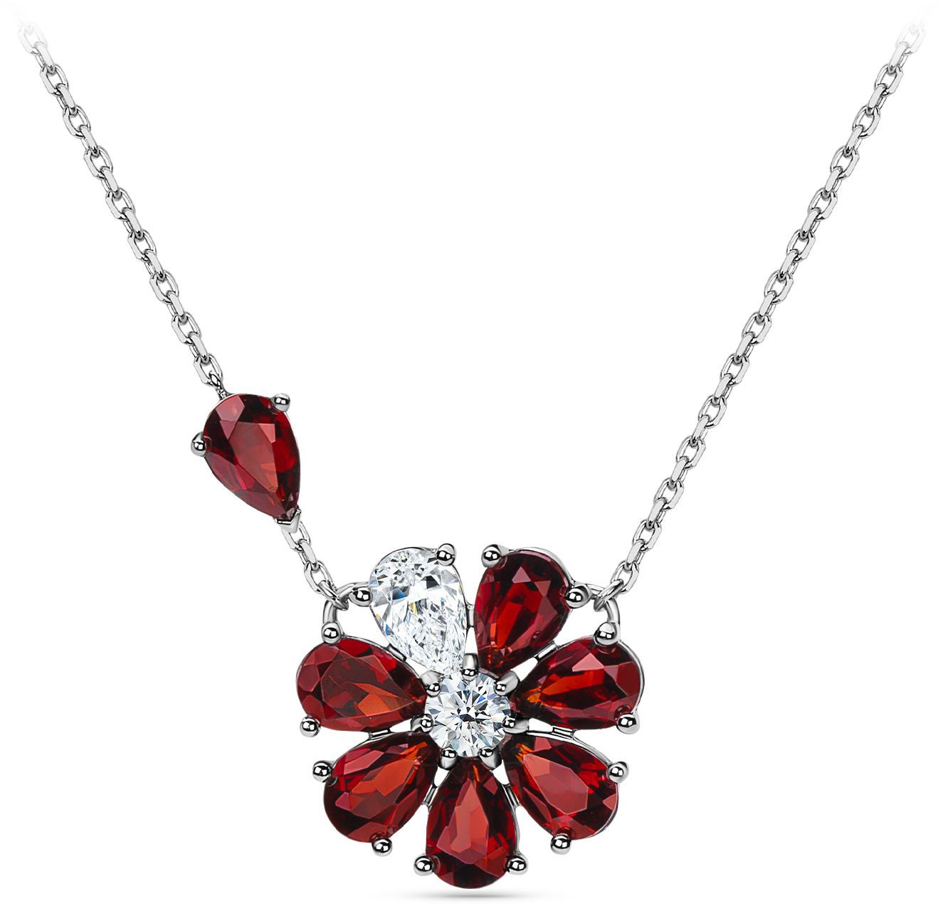 Яркий, романтический сет, в который вошли подвеска и пусеты. Украшения выполнены из серебра 925, цветики в виде нежных лепестков с белым топазом и алыми гранатами. На подвеске также закреплен алый лепесток, который добавляет игривости и загадочности украшению. Сет подчеркивает нежность, очарование и индивидуальность своей обладательницы.