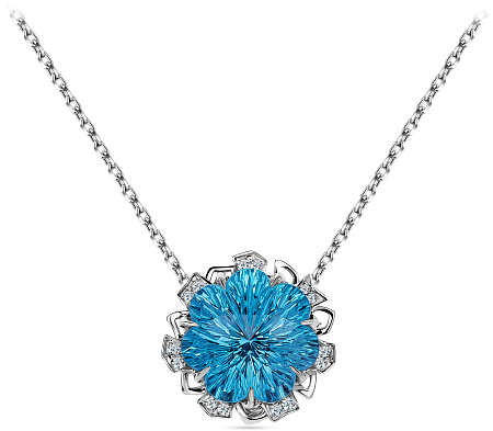 Подвеска «Каменный цветок» из белого золота 750 пробы с бриллиантами и топазом Swiss Blue.