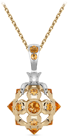 Подвеска «Морошка» из желтого и белого золота 750 пробы с янтарными цитринами. Коллекция «Сказочный лес».