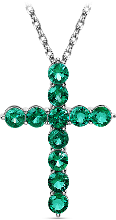 Подвеска из белого золота в виде крестика инкрустирована изумрудами классической огранки.