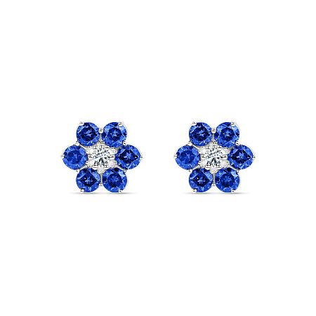 Пусеты "Дочки-цветочки" из белого золота 750 пробы с бесцветными топазами и топазами London. Коллекция «Детская».