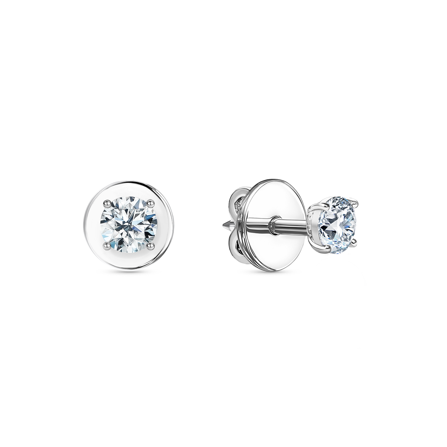 Пусеты из белого золота 750 пробы с бриллиантами. Коллекция «Классическая».