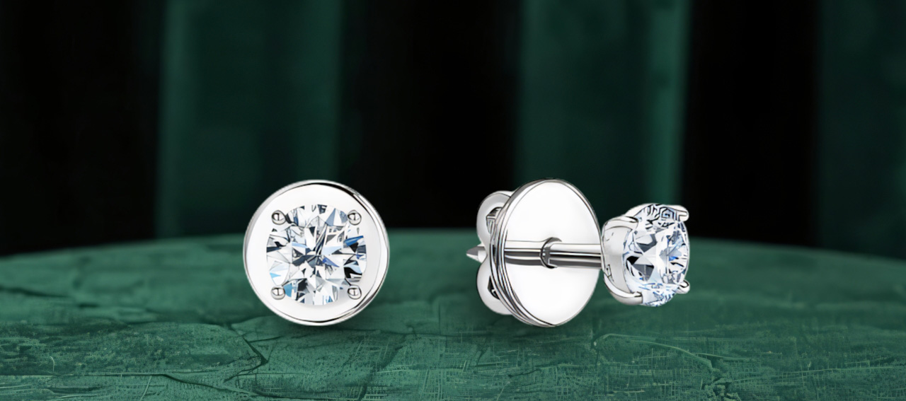Пусеты из белого золота 750 пробы с бриллиантами. Коллекция «Классическая».